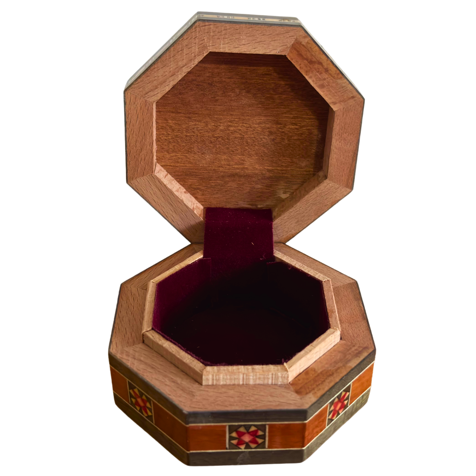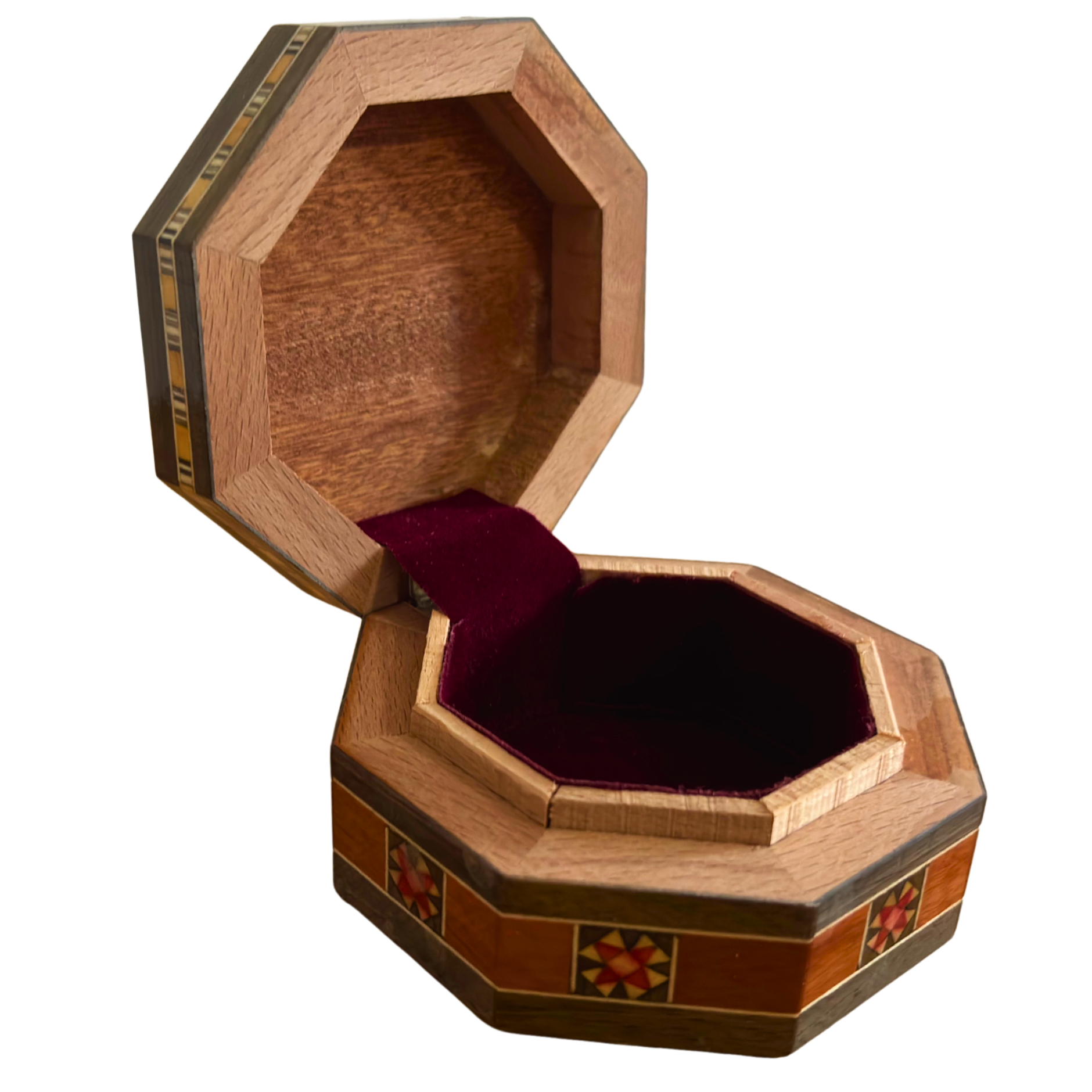 mini octagonal mosaic box, handmade Damascene box, mother of pearl jewelry box, Middle Eastern keepsake, walnut wood box, unique gift idea, artisanal wooden box, cultural mosaic art, Damascus box, Syrian box, gift for her, gift for him